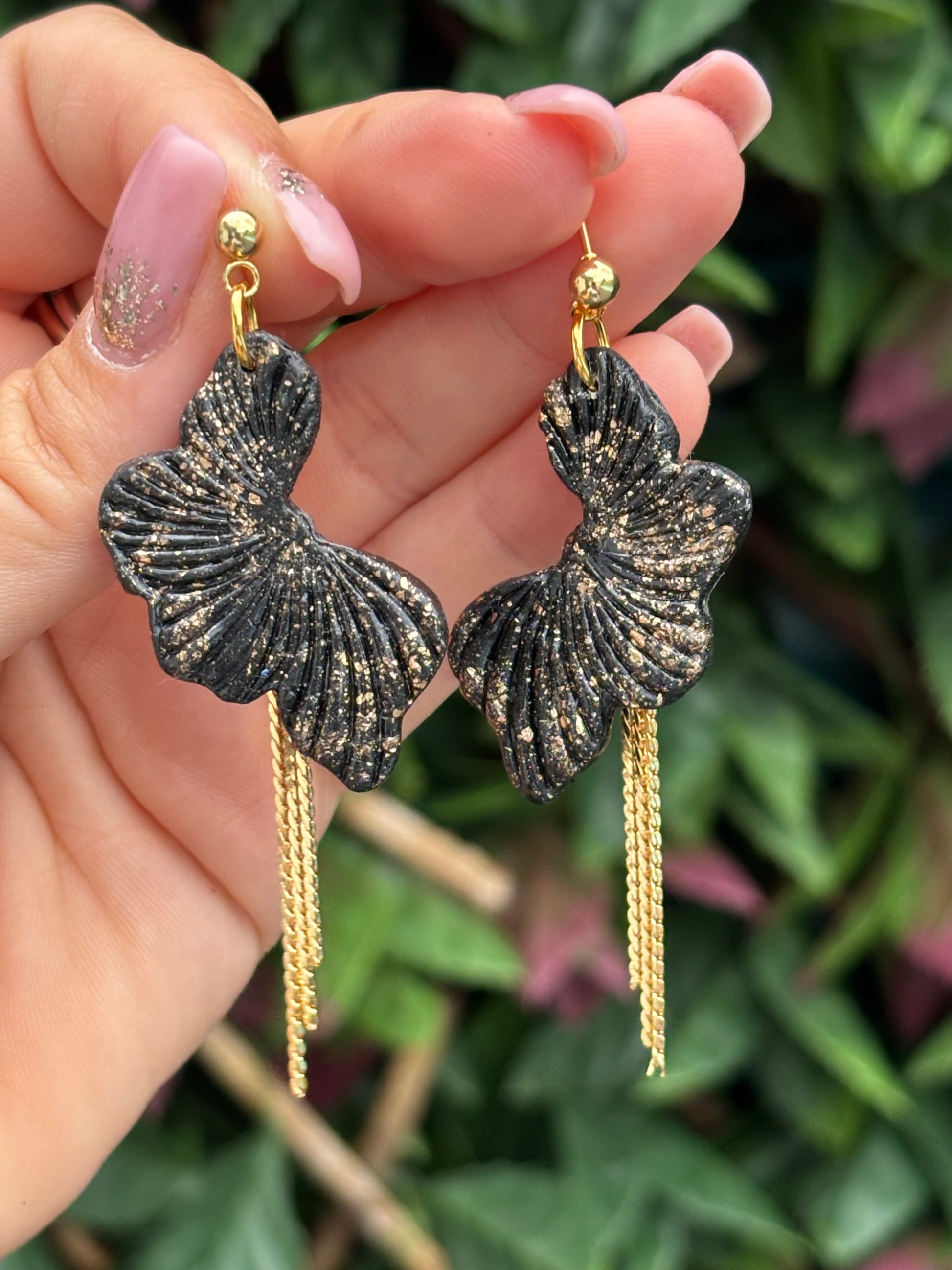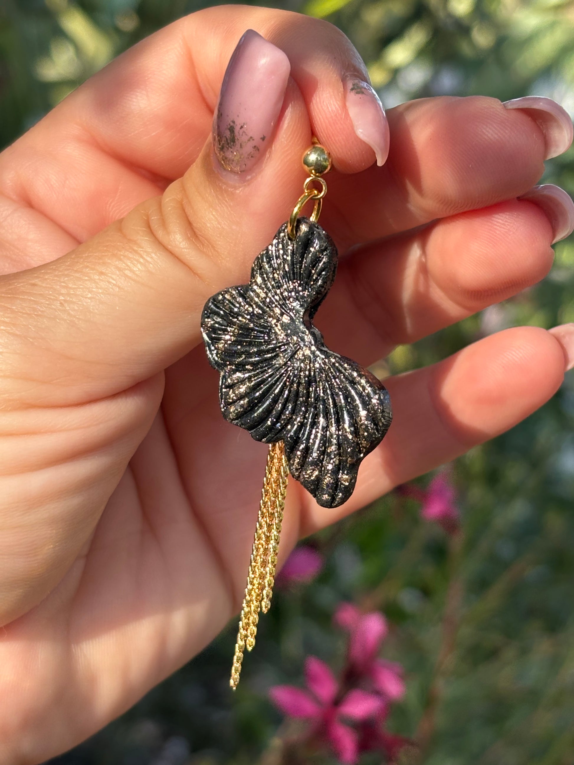 Magnifique boucle d’oreille en forme d’aile de papillon sublimée par une chaîne pendue à la boucle