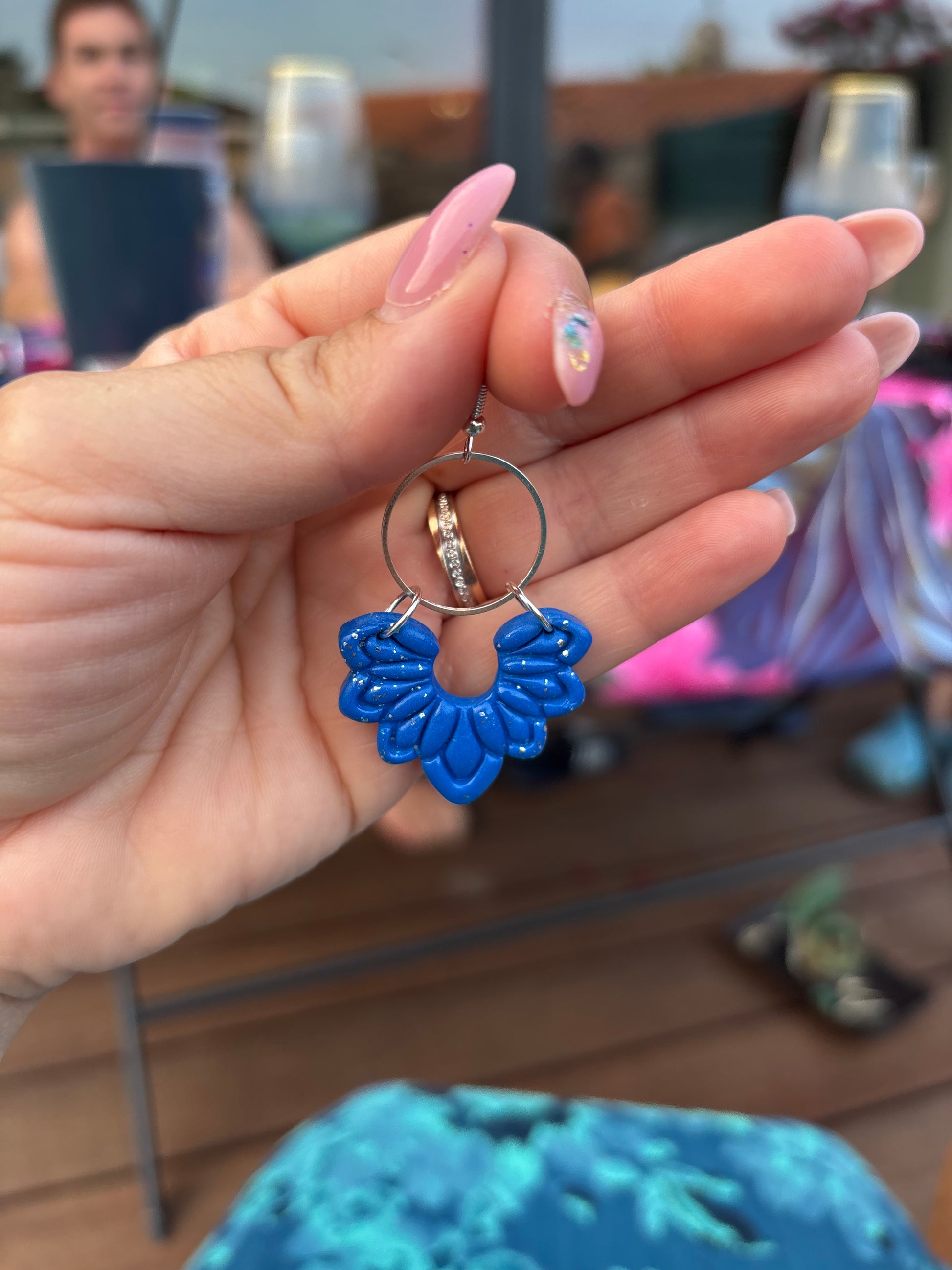 Petit éventails personnalisables : avec un rond doré ou argenté ou avec une petite puce en pâte polymère (comme sur la photo de la boucle aux 2 rouges)